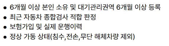 공통 조건으로 아래 조건에 모두 해당하시는 분들은 조기폐차 지원금을 받으실 수 있습니다.