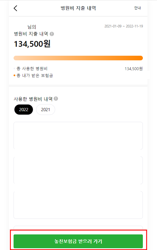 - 인증하신 후 3년간 병원에서 얼마나 썼는지 지출내역을 알 수 있습니다.