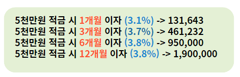 적금을 통해 조금이라도 이자를 얻을 수 있는 것이 좋습니다.