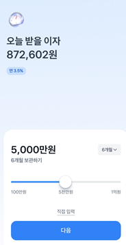 금액은 최소 100만 원부터~1억까지 3개월, 6개월로 연 3.5% 금리로 적금하실 수 있습니다.