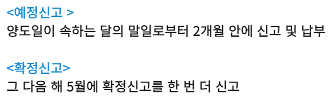 2채 이상이라면 각 부동산에 대하여 예정신고와 확정 신고까지 진행하여야 합니다.