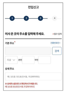 - 이사 가는 곳의 주소를 입력하시고 해당하는 항목을 선택하시면 끝입니다.