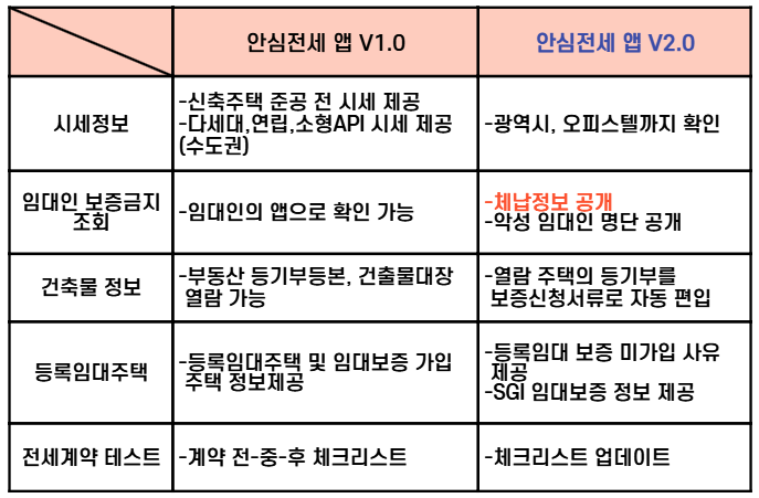 마지막으로 안심전세 앱 V1.0과 V2.0을 어떻게 개선되었는지 비교해 보았는데요
