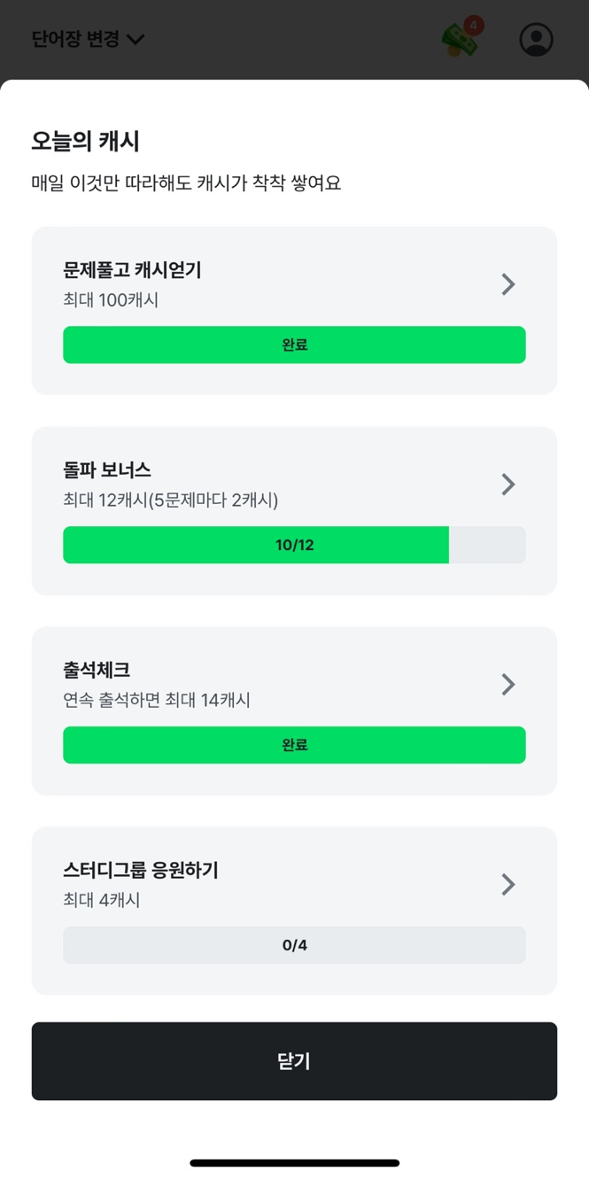 캐시보카는 영어단어공부를 하면서 캐시는 모을 수 있는 앱인데요 .제일 강추드리는 앱테크입니다. 공부도하고 돈도 모으고! 일주일 했는데 2000포인트 모았네요 ㅎㅎ