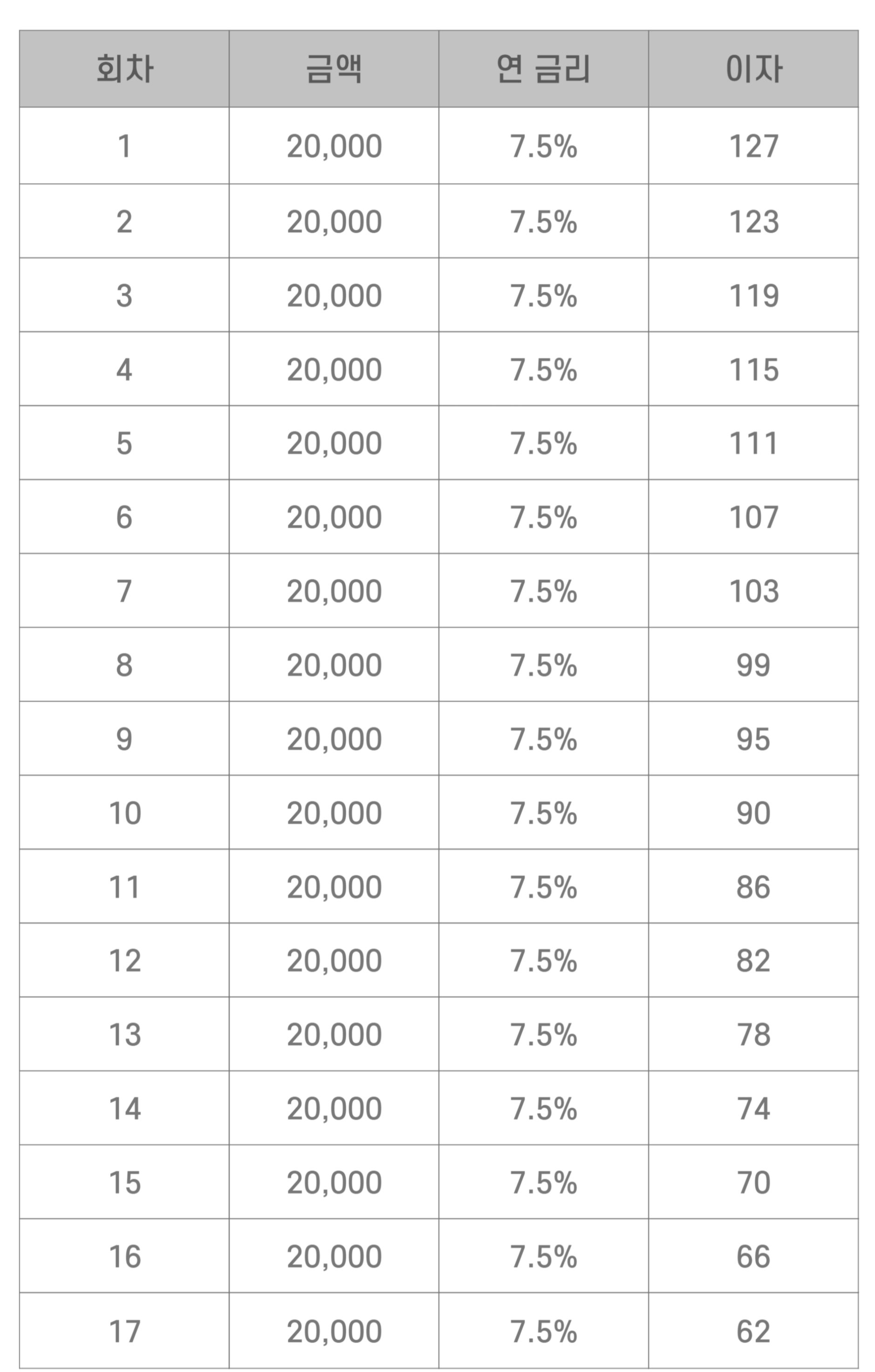 예를 들어 매일 20,000원을 31일 동안 적금한다고 하면 실수령금액은 아래와 같습니다.