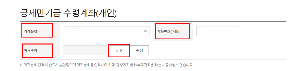 (4) 수령방법 선택하신 후 계좌입력해주시면 끝입니다.