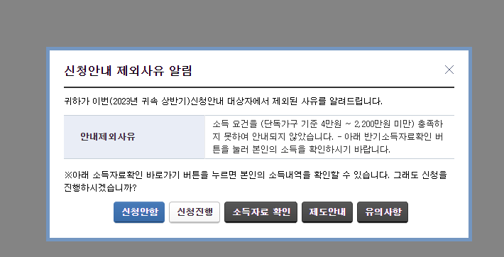 ☆ 신청대상이 아닌 경우 아래화면과 같이 창이 뜹니다.