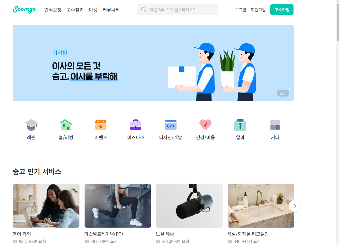 ▶ 숨고사이트는 서비스에 특화된 사이트입니다.