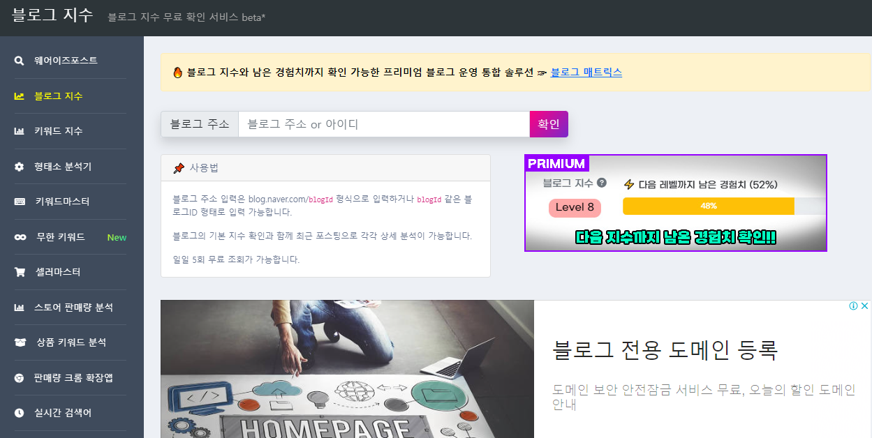 ▶ 웨어이즈포스트는 블로그 운영하시는 분들께 좋으실 것 같습니다. 키워드 분석, 블로그 지수 등 다양한 기능들을 활용하실 수 있습니다.